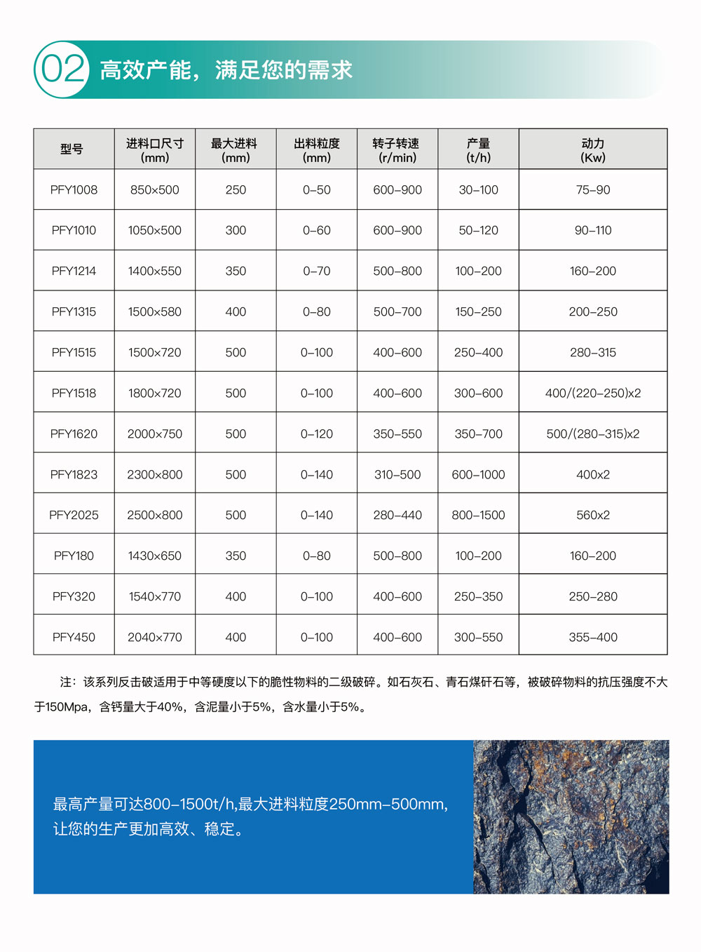 適應物料:花崗巖、石灰石、混凝土、生石灰、石膏、熟石灰